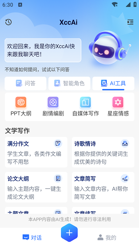 XccAi是一款高度自动化、智能化且个性化的AI写作软件,涵盖PPT大纲、剧情编剧、自媒体写作、文章缩写、续写、短视频脚本等多种功能,为用户提供了一个高效、智能的写作解决方案,有需要的用户快来下载吧。