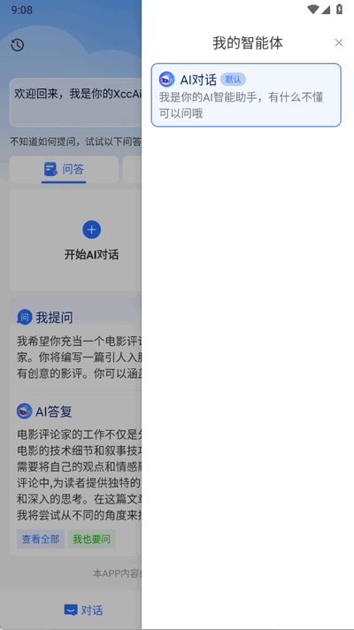 2、智能助手互动:提供多种AI角色供用户选择,在编辑区输入文字内容后,若遇到问题或困惑,可通过与AI智能对话获取答案和建议,增强创作的交互性和引导性。