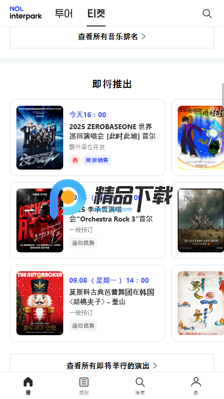 NOL ticket官方国际版是原Interpark Ticket更名而来,主要用于购买一些热门的门票。通过这个平台可以快速购买到音乐剧,电影,体育项目等等的门票,功能非常不错,可以满足大部分人的用户使用需求,需要的可以下载购买相应的门票。