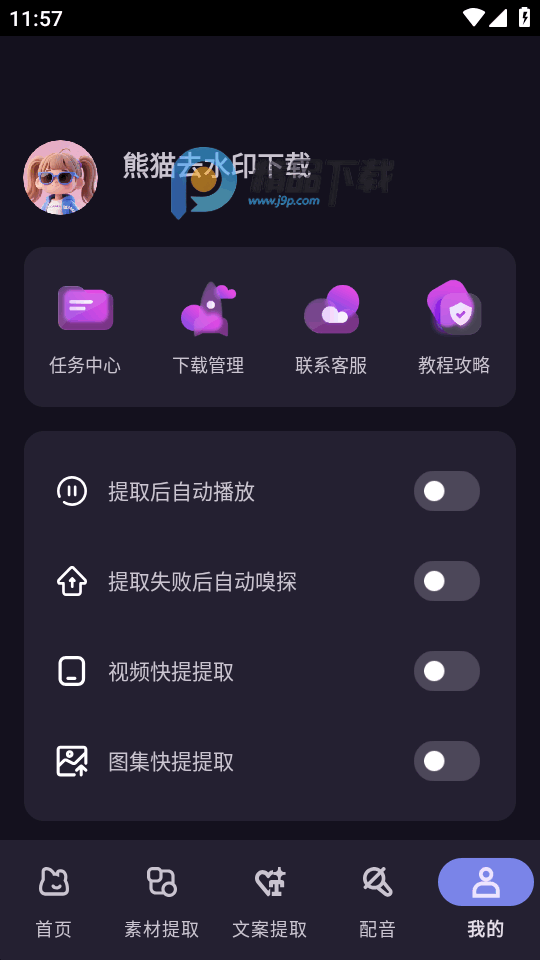 整个工具的界面设计简洁明了,首页清晰划分 “素材提取”“文案提取”“配音”“我的” 四大板块,不管是找功能还是操作步骤,都没有复杂的门槛。比如素材提取,只需粘贴链接点击按钮;AI 抠图只需上传图片,全程无需专业技能,新手也能几分钟内熟练使用。