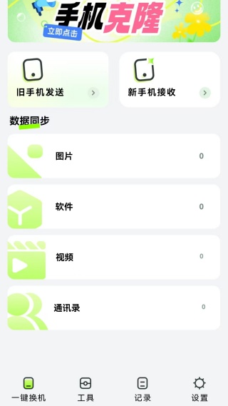 2、进入一键换机板块,大家可以轻松实现旧手机发送,新手机接受,数据同步不复杂。