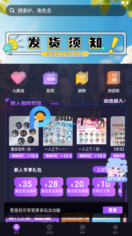 品类丰富:提供千款热门IP手办、模型、卡牌等,品类齐全。
