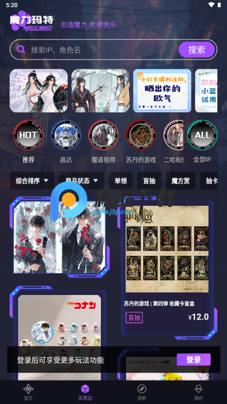 魔力玛特是二次元爱好者的首选平台,提供丰富的谷子抽赏和盲盒潮玩购买服务,所有商品均为官方正品。平台拥有千款热门IP首创的锁盒机制确保抽赏公平,多种玩法如盲盒、一番赏、自由赏等趣味十足。二次元吃谷必备软件,二次元可以免费下载使用此软件。