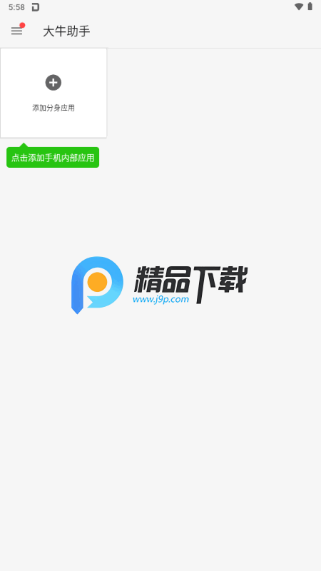 1、安装大牛助手之后打开的界面如下,点击【添加分身应用】;
