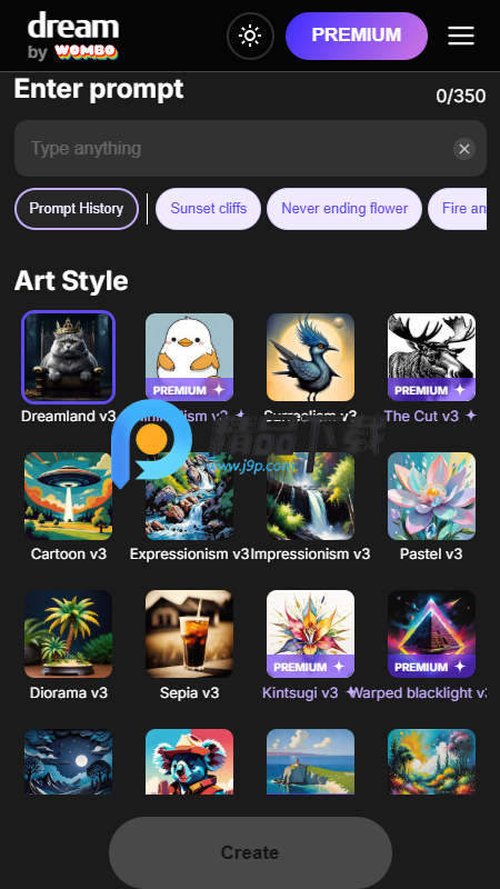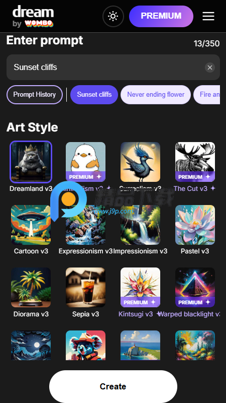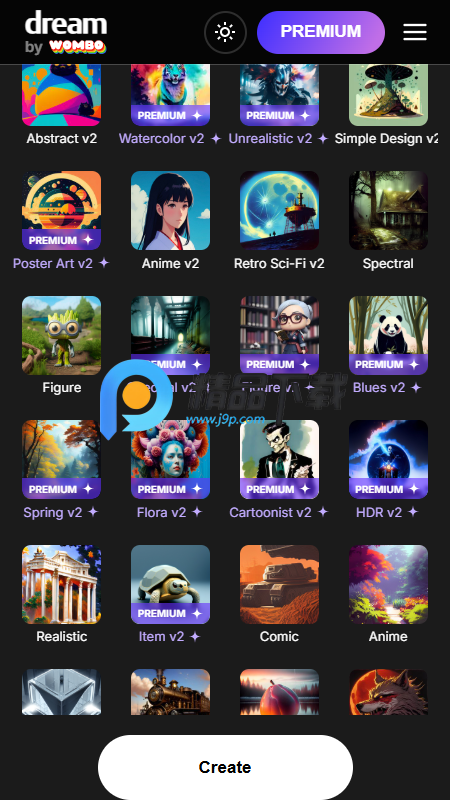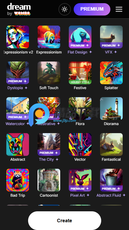 第二步:选择一个艺术风格,Wombo内部提供了几个风格可供选择,超现实主义风,蒸汽朋克,幻想艺术,黑暗幻想,蚀刻风,巴洛克风,以及浮世绘等。多样的风格让你的创作更加游刃有余。