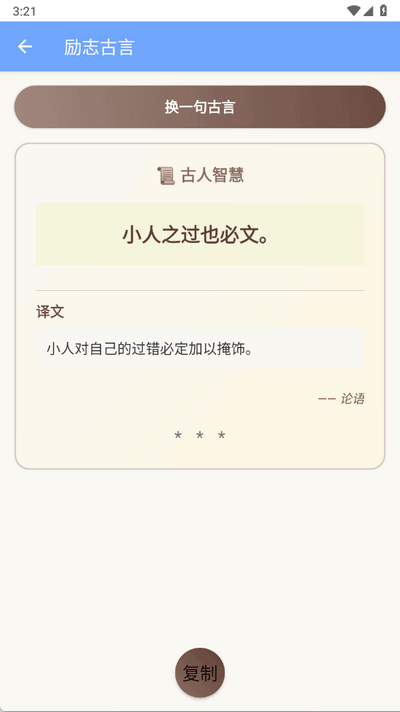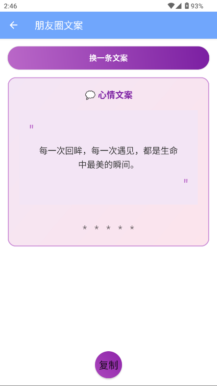 3、例如进入朋友圈文案板块,如果遇到满意的文案,可以点击复制文本内容,或者点击换一条文案