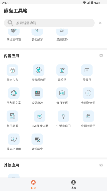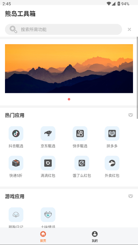 熊岛工具箱是一款多功能实用工具软件,内置热门应用、游戏应用、娱乐应用、内容应用、其他应用五大类,将多种高频使用的工具整合于一体,所有核心功能均免费开放,无需付费即可使用全部工具。