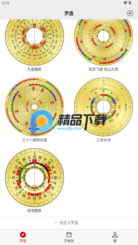 多种罗盘样式:提供三元盘、三合盘、综合盘等多种传统罗盘样式。