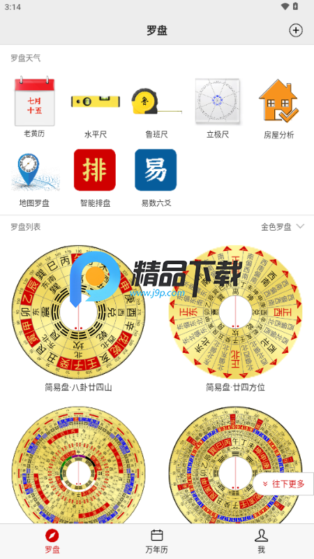 1、打开应用进入主页,往下划选择并点击需要的罗盘。