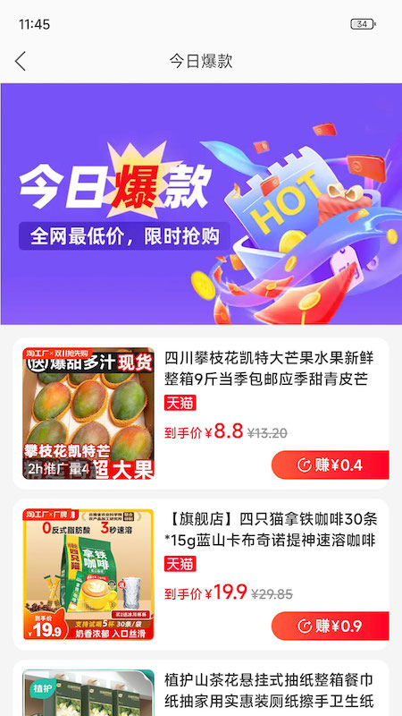 购物返利:提供海量淘宝商品优惠券,帮助用户节省购物成本。