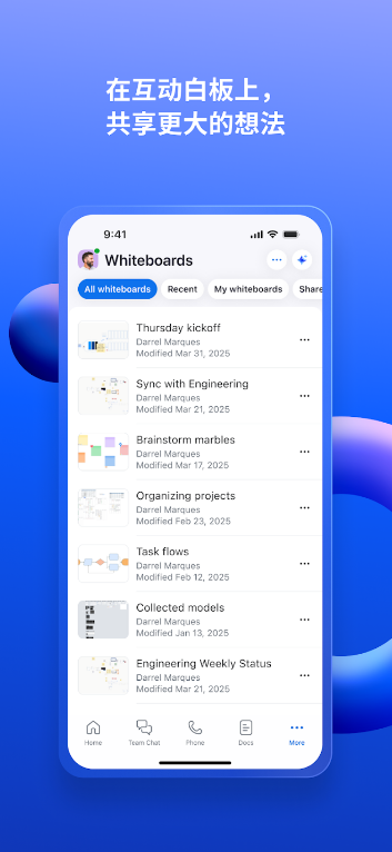 多功能集成:结合团队聊天、会议、电话、白板、日历、邮件和文档等多种功能。