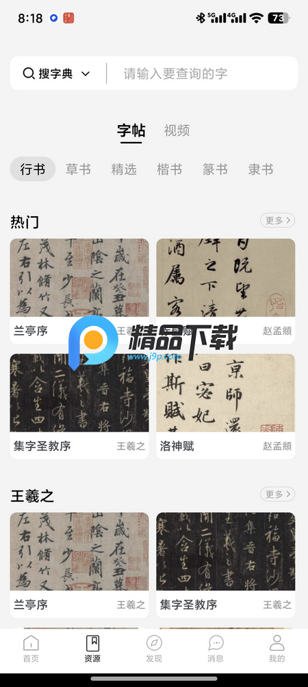 5、其次在作品库中,用户可以看到各种书法类型的字帖资源,还有各种书法名家们的作品合集。