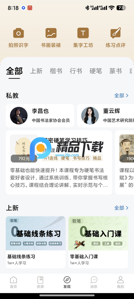6、如果你是书法的初学者,这里还提供了诸多的精品课程,如图所示,用户可以选择感兴趣的课程内容去了解。