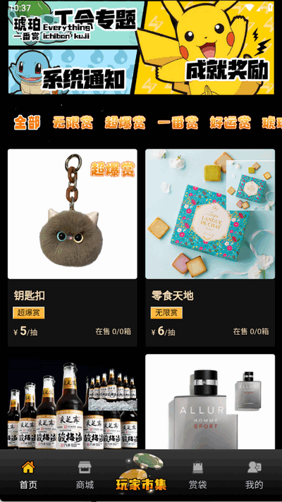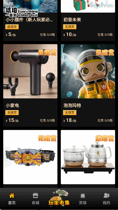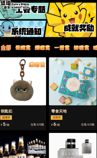 1、抽赏活动:包括“一番赏”“超爆赏”“好运赏”等多种玩法,覆盖高价值手办、限定周边等赏品。用户可自由选择抽取数量(如1发、3发等),实时查看开箱结果,中签流程公开透明。