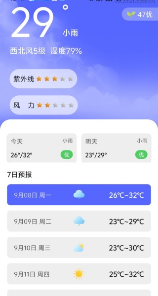 1、当前的天气情况给大家呈现,可以根据需求来出门;