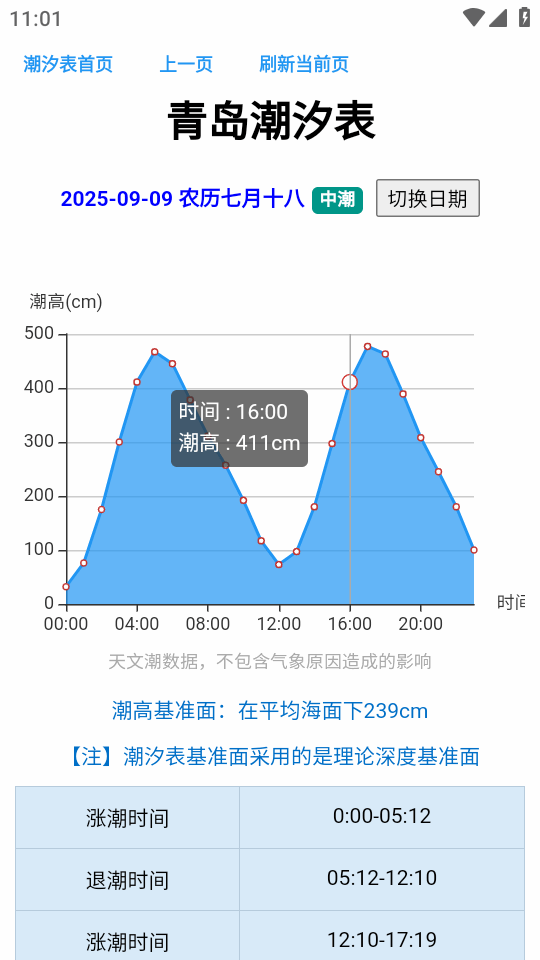 5、点开就可以看到最新的潮汐表,还可以切换日期查看。