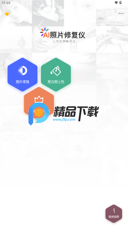 AI照片修复仪是一款专业且易用的照片修复软件,能够帮助用户清晰地回忆过去。无论是模糊不清的老照片还是有划痕的纸版照片,只需简单一照或扫描,AI照片修复仪就能一键将这些照片还原至高清样式。解锁会员功能,只需要下载就可以解锁,无需登录。
