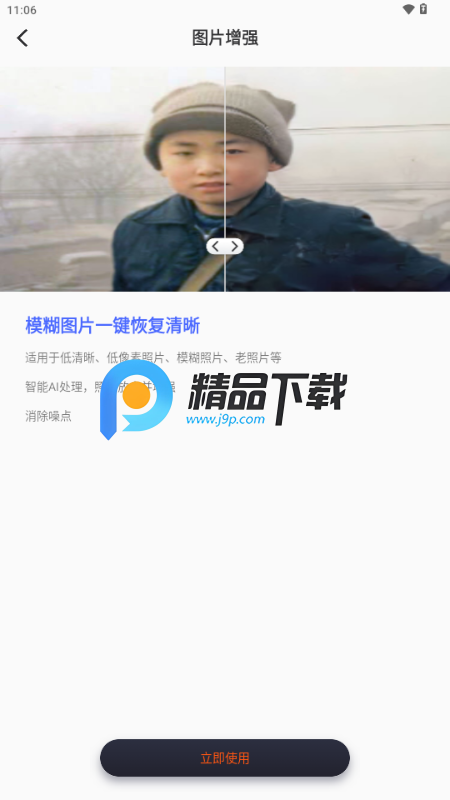 图片增强:一键将老旧、模糊或低分辨率的照片还原至高清。