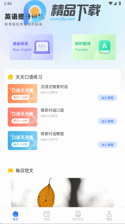 1、打开app就可以进行英语学习和训练,基础英语、即时翻译、口语练习等功能等你来;