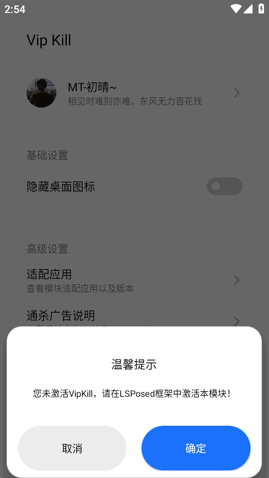 1、先在本站下载安装好VipKill模块及LSPosed框架软件。