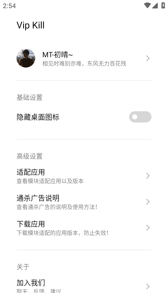 专门为用户打造的一款应用软件去广告,解锁会员的模块,Vip Kill模块最新修复版,支持的软件很多,还支持通杀广告,各种常见的广告都可以去掉,软件是免费的,操作很便捷,适配性强,需要搭配LSPosed框架一起使用,很不错。