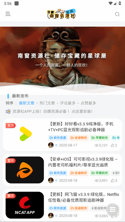 南窗资源社app是一款功能丰富且实用的手机应用,它为用户提供了海量的软件、游戏以及其他资源下载服务,包括各类主流软件、热门游戏、最新电影、经典动漫等,全部提供免费下载,快来下载试试吧。