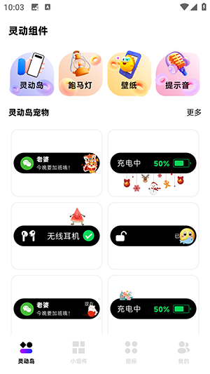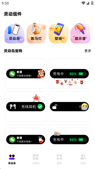 1、首页灵动岛可以查看灵动组件还有热门的宠物组件。