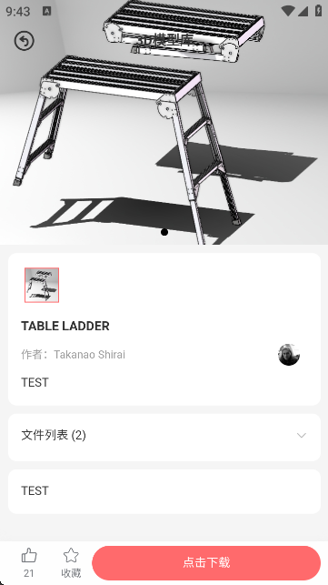 模型浏览:打开 APP 即可查看海量 3D 模型列表,点击进入详情页,支持 下载模型文件 或 收藏模型(需微信 / 手机登录,保障资源管理连续性)。