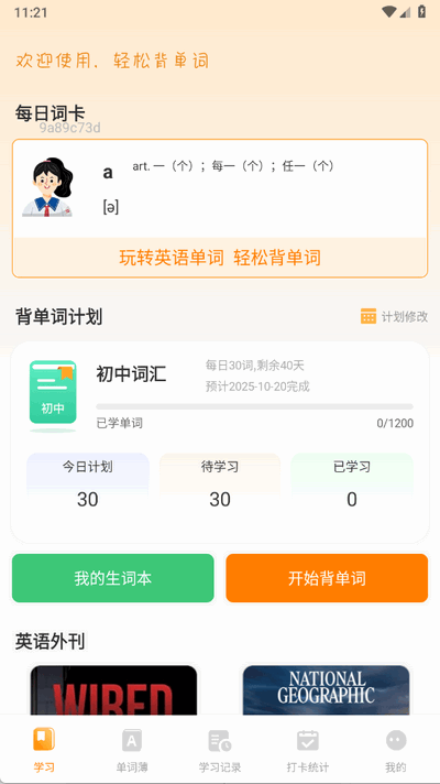 通过测试用户的当前词汇水平(例如基础量500-20000不等),生成专属学习计划;