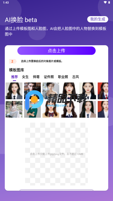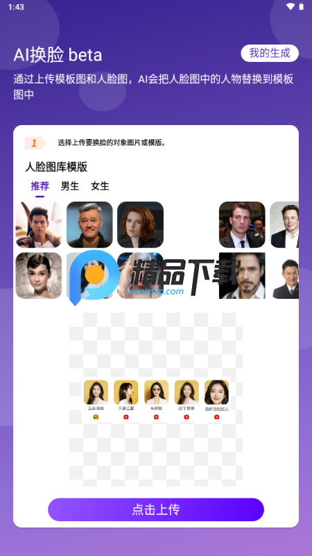 一键换脸功能:用户只需上传一张照片,即可快速实现换脸效果。
