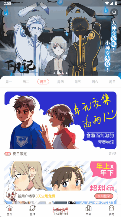 1、海量作品涵盖多题材:拥有国内外多样化的漫画种类,包括校园恋爱、悬疑科幻、武侠战斗、国风搞笑等,无论你喜欢哪种类型的漫画都能在这里找到。既有热门连载,也有经典完结和原创作品。