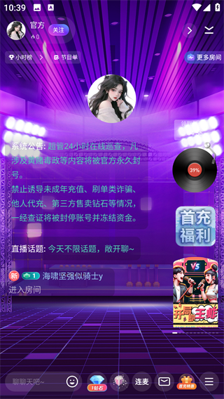 4、语音直播与弹幕互动:实时观看主播语音直播,通过点赞、送礼等方式参与互动;听众也能以语音或文字形式加入讨论。