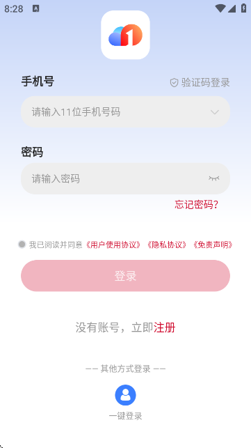 3、接着进入到软件的登录界面,如图所示;这里可以通过输入手机号和验证码进行登录,