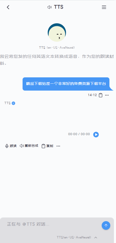文字转语音(即 TTS,Text to Speech)可以将文本合成为语音,以便于跟读训练。此处设置为默认值,在文字转语音时仍可选择不同服务。