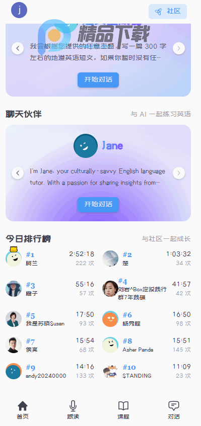 适用多平台的一款开源免费的ai英语学习软件,Enjoy ai英语助教软件,整理了非常多实用的功能,免费的音频下载,在线英语对话,课程学习,翻译教练等实用功能,打开后可以直接登录使用,不需要获取什么权限,整合了ai聊天功能,还有阅读文本等操作,ai最好的英语老师。