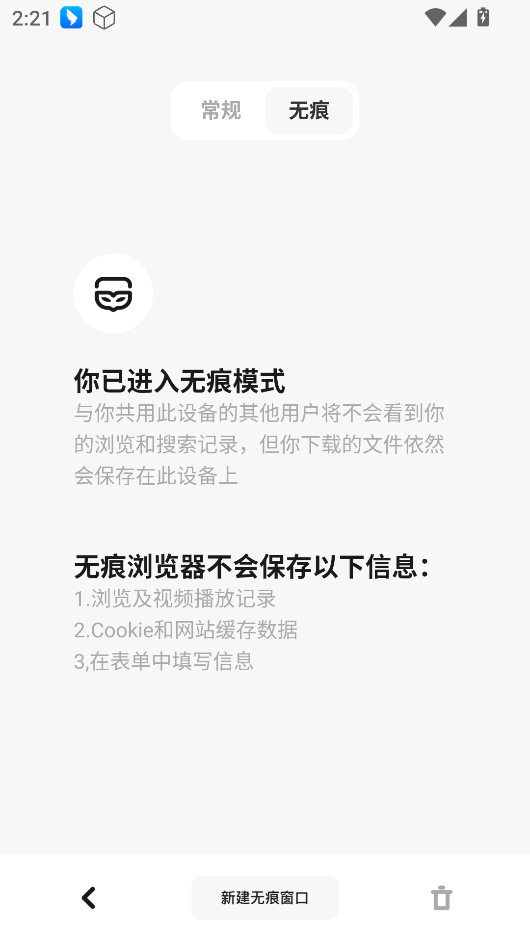 保护您上网时下载的图片、视频、小说等内容不被他人窥视,提供无痕浏览功能。