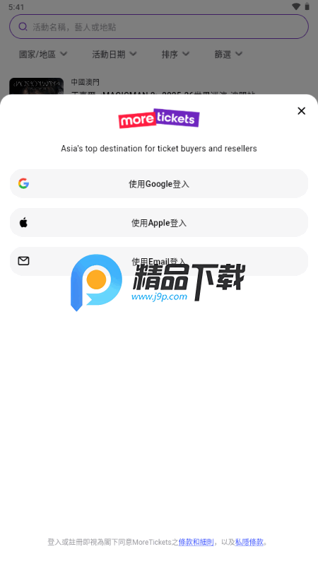MoreTickets是一款提供便捷、安全、透明票务服务的演唱会买票软件。它让用户能在值得信赖的市场上轻松购买音乐会、演出和体育赛事门票,只需几步就能完成购票,享受无忧的票务体验。该软件提供100%订单保证,若门票无效则全额退款并赔偿高达100%。