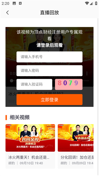 2、点击首页想看的直播回放视频,提示需要登录的,提供手机号密码,完成登录,就可以去观看学习。