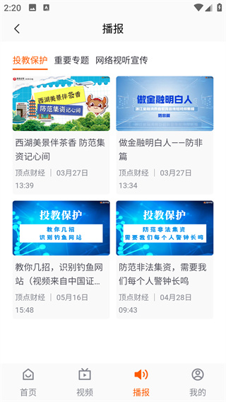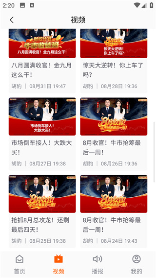 3、点击首页下方工具栏的视频,提供了丰富多样的财经视频,大家直接进入就可以观看了解的。