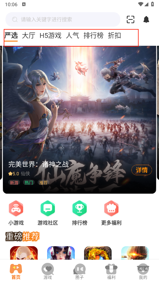 2、打开软件,首页有人气游戏、排行榜、折扣区等,下滑还可以查看超多的游戏。
