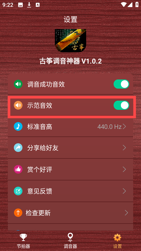 4、最后点击右下角的“设置”,可以直接开启示范音效,如图所示。