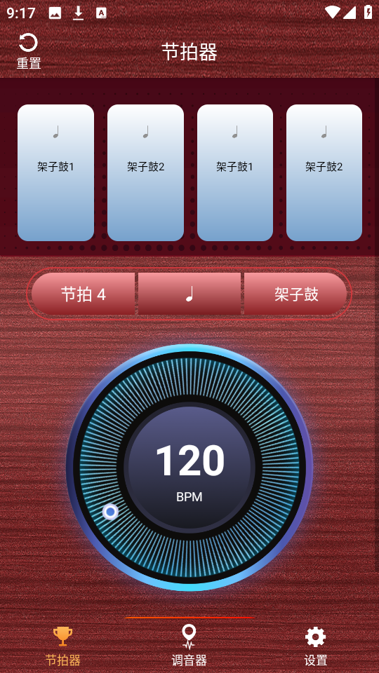 2、接着点击下方的“节拍器”,我们可以看到丰富的架子鼓节拍。