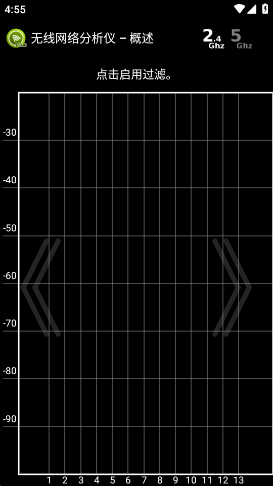 安卓手机上非常专业好用的一款手机无线网络分析仪工具,Wifi Analyzer Pro安卓手机正版,界面干净清爽好用,打开手可以直接操作,轻松查看无线网络的各项分析数据,没有广告,无任何付费内容,可轻松查看图表中的信号强度,还有通道宽度信息等内容。