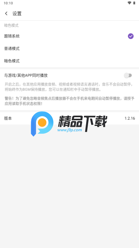 3、开启之后,在其他应用播放音频、视频或者视频语言通话时,音乐不会自动暂停将始终作为BGM保持播放,您可以在通知栏中手动暂停播放。