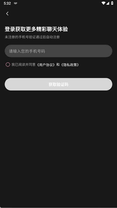 2、进入登录页面,输入手机号并获取验证码(未注册手机号验证后自动注册);