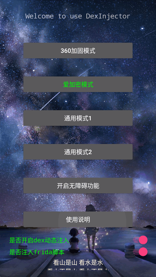 后续使用过程中,爱加密模式、dex动态注入、frida脚本等功能慢慢摸索就好了