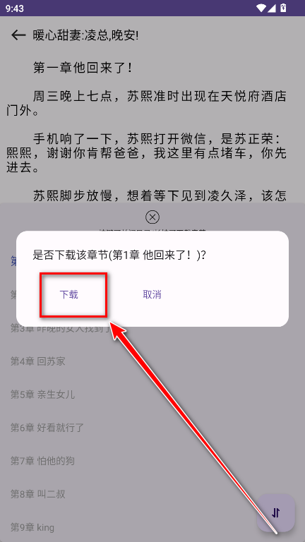 3.根据系统的提示操作,长按我们想要下载的章节。