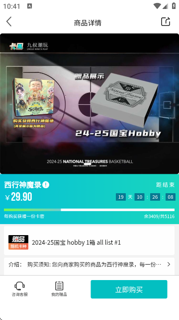 4、选择自己感兴趣的卡牌商品点击其封面可进入查看详情,如图所示,这里可以咨询客服,或者立即购买,