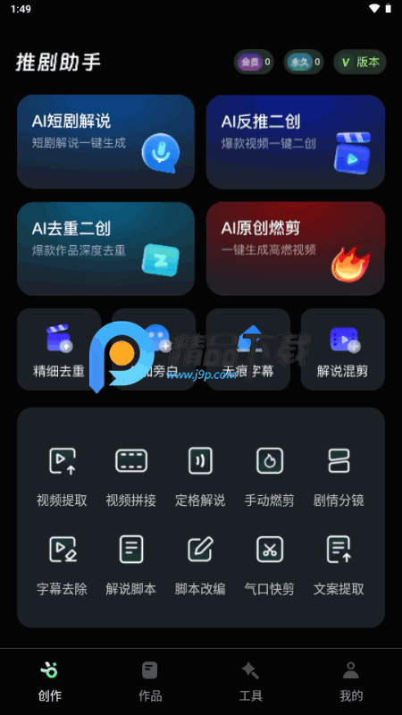 实用剪辑工具箱:提供视频拼接、水印处理、文案提取、字幕去除等功能。