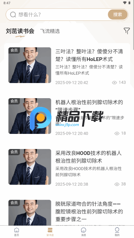 1.视频课程,直观体会:APP设置“刘茁读书会”和“飞流精选”课程,学者可以浏览完整讲课视频,专门设置讲师专栏及评论区互动,邀请国内顶尖专家闭门课移动化,手术难点立体解析。
